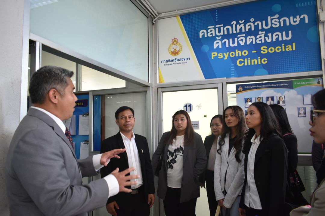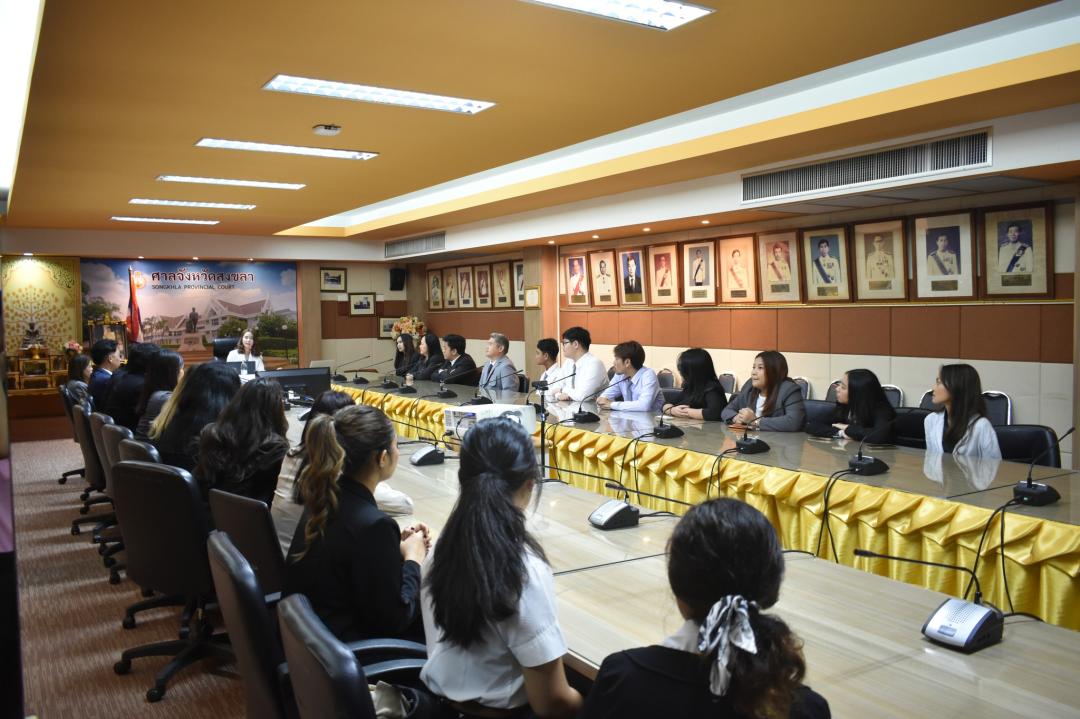 คณะนิติศาสตร์ มหาวิทยาลัยทักษิณ นำนิสิตคณะนิติศาสตร์ มหาวิทยาลัยทักษิณ และนิสิตคณะนิติศาสตร์ Atma Jaya Catholic University of Indonesia เข้าศึกษาดูงาน ณ ศาลจังหวัดสงขลา โดยในโอกาสนี้ได้รับเกียรติจาก ท่านฑิตา ตันคณิตเลิศ ผู้พิพากษาหัวหน้าคณะชั้นต้นในศาลจังหวัดสงขลา เป็นวิทยากรบรรยายเกี่ยวกับ”Thai Judiciary System” (ระบบศาลไทย) ณ ห้องประชุมศาลจังหวัดสงขลา อำเภอเมืองสงขลา จังหวัดสงขลา และนำเยี่ยมชมศาลจังหวัดสงขลา