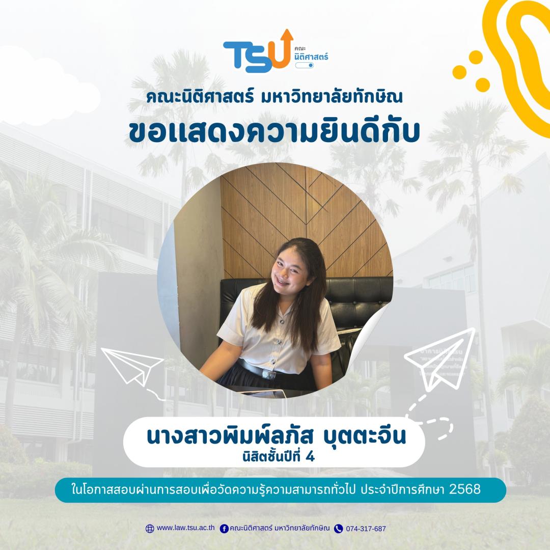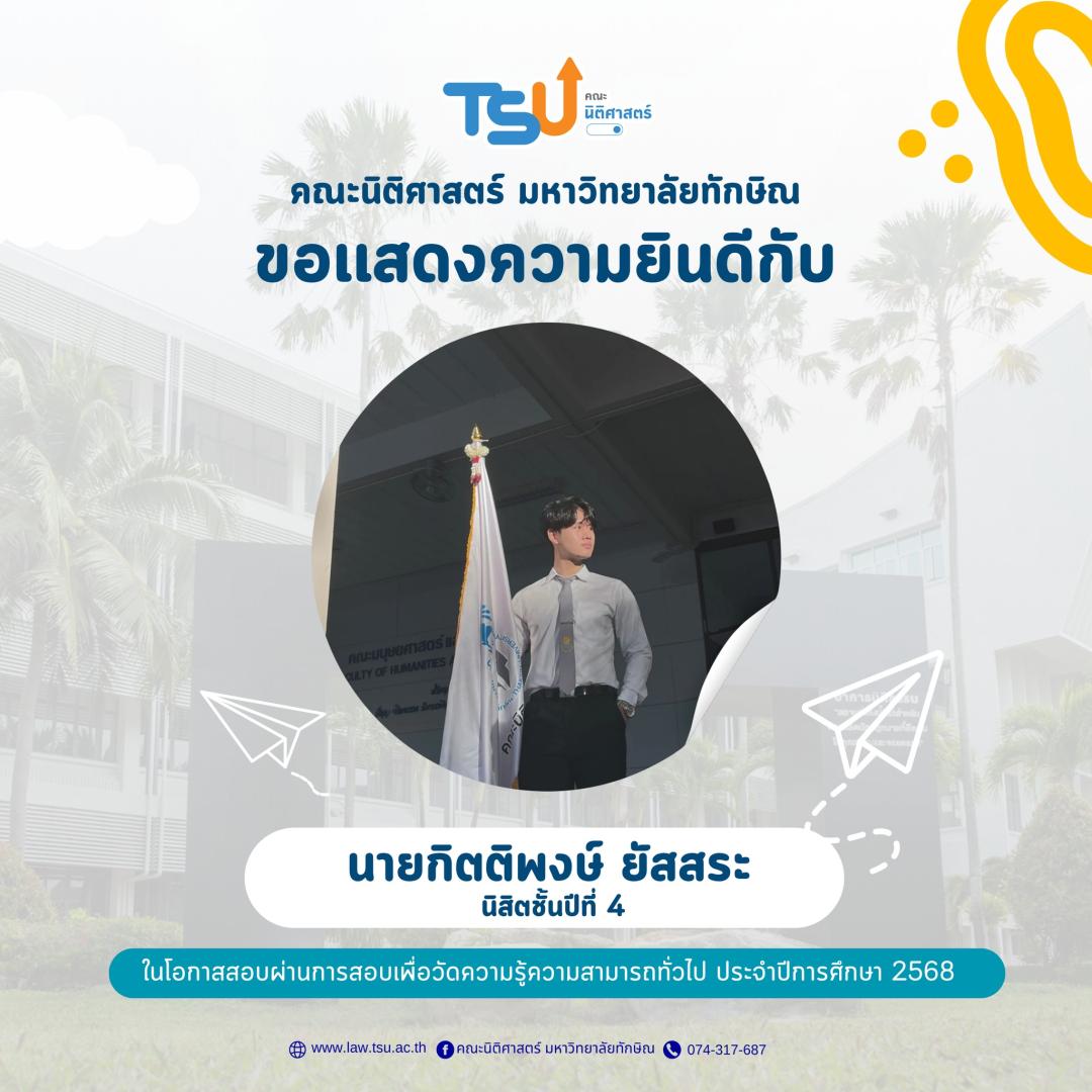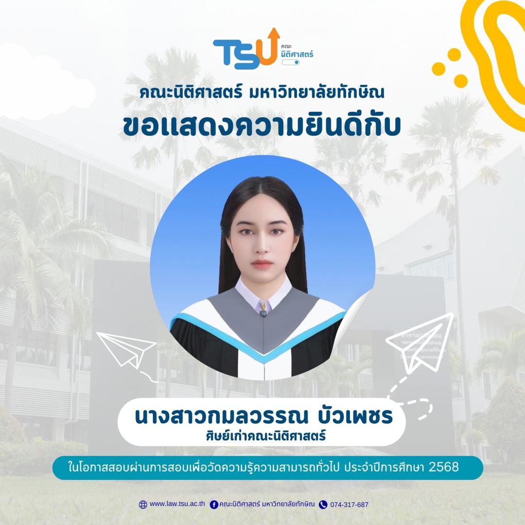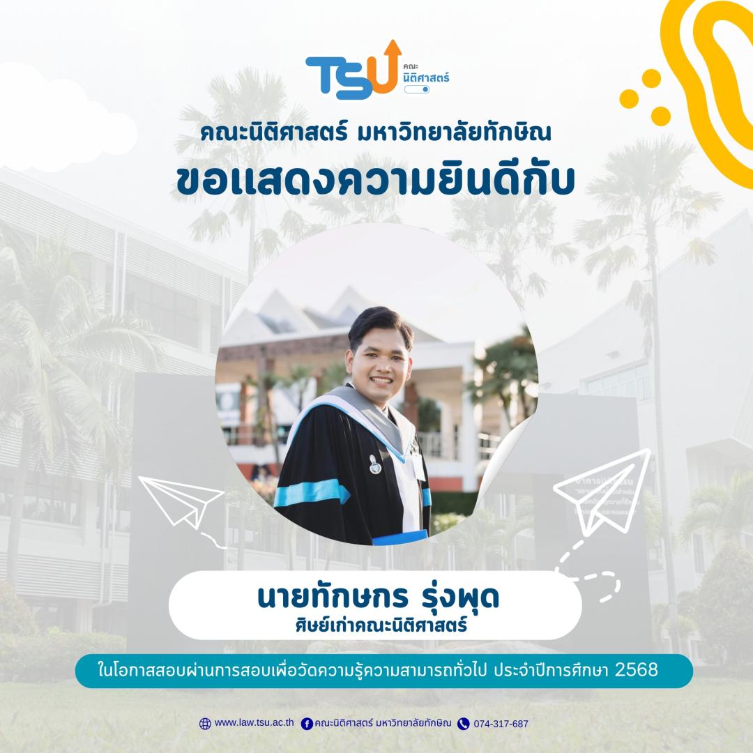 ???? คณะนิติศาสตร์ มหาวิทยาลัยทักษิณ ขอแสดงความยินดีกับนิสิตและศิษย์เก่าคณะนิติศาสตร์ทุกคน????