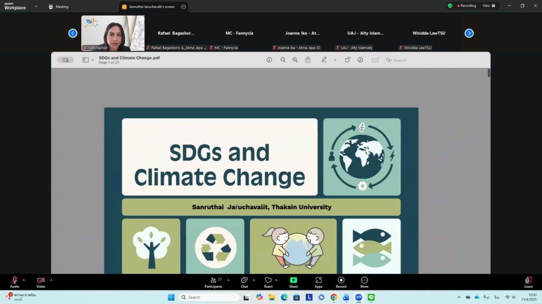 นิติศาสตร์ ม.ทักษิณ ร่วมเป็นวิทยากรระดับนานาชาติ ในหัวข้อ Climate Action through Law