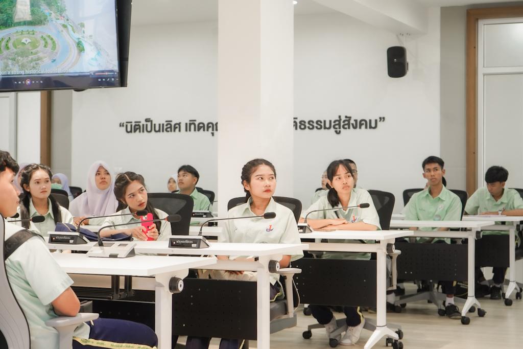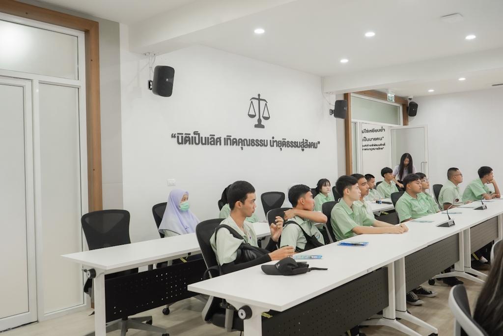 นอกจากนี้ ทางคณะนิติศาสตร์ได้นำคณะคุณครู และนักเรียน เยี่ยมชมบรรยากาศการเรียนจริงและห้องศาลจำลองแล้ว น้อง ๆ ยังได้พูดคุยกับนิสิต คณาจารย์เพื่อหาคำตอบว่า "นิติศาสตร์" ใช่ทางที่ฝันไว้หรือไม่?