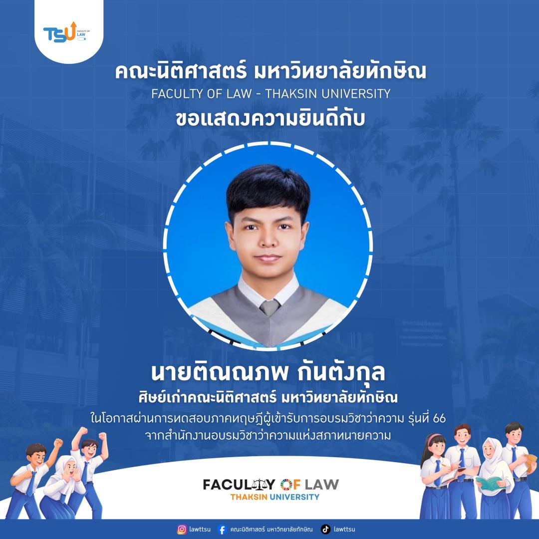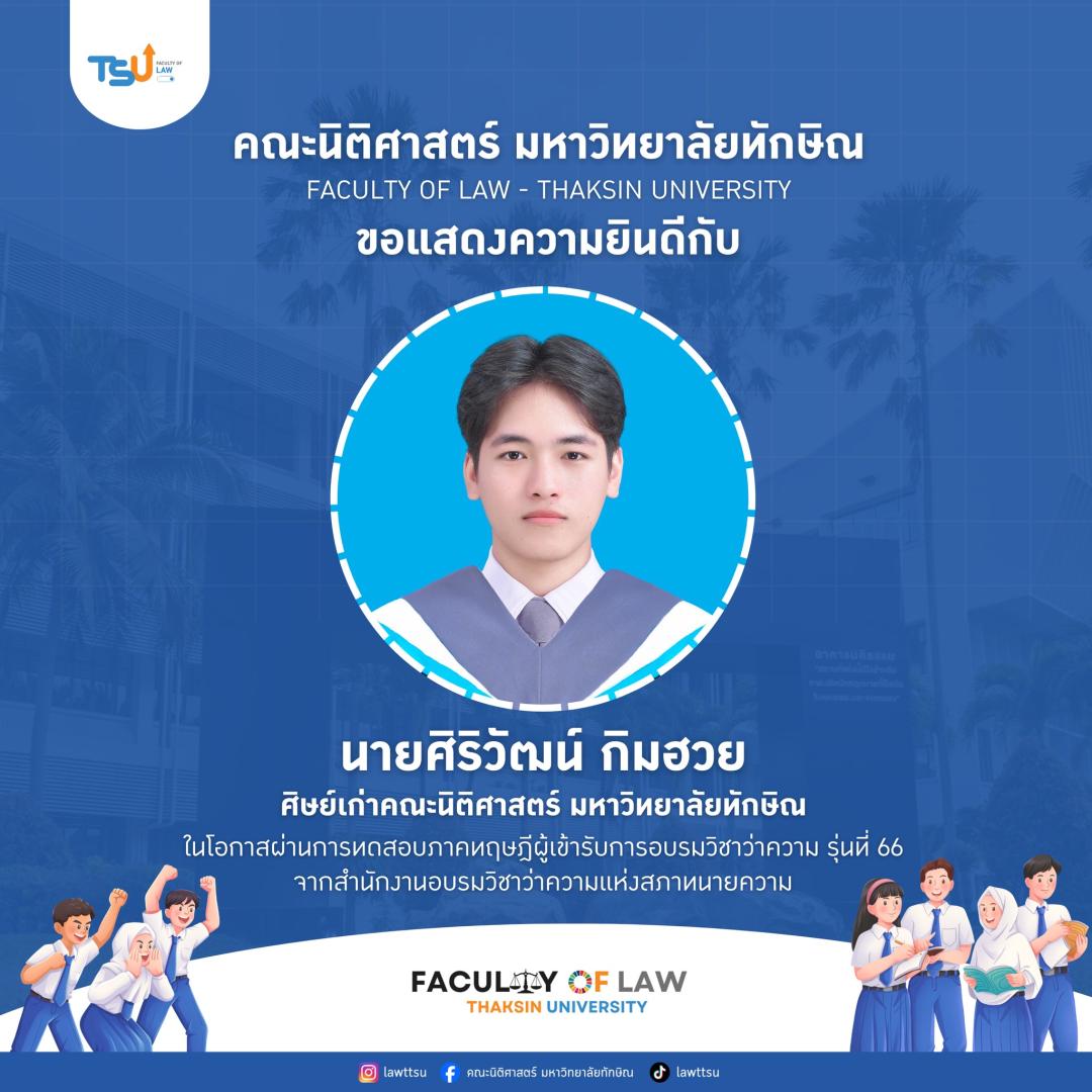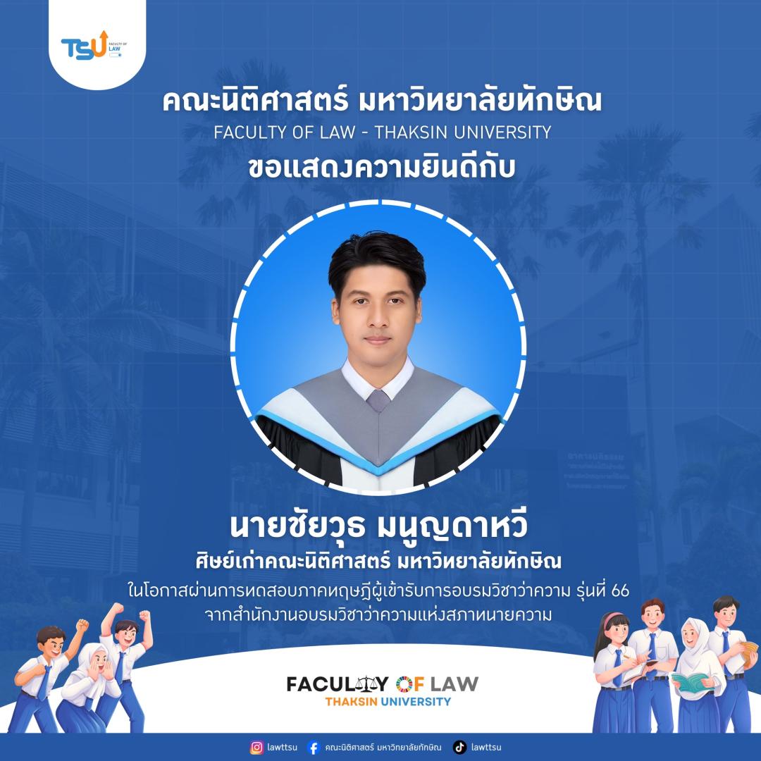 ???? ขอแสดงความยินดีกับความสำเร็จอีกก้าวของนิสิต และศิษย์เก่านิติศาสตร์ มหาวิทยาลัยทักษิณ