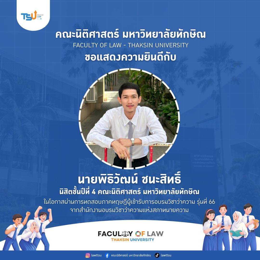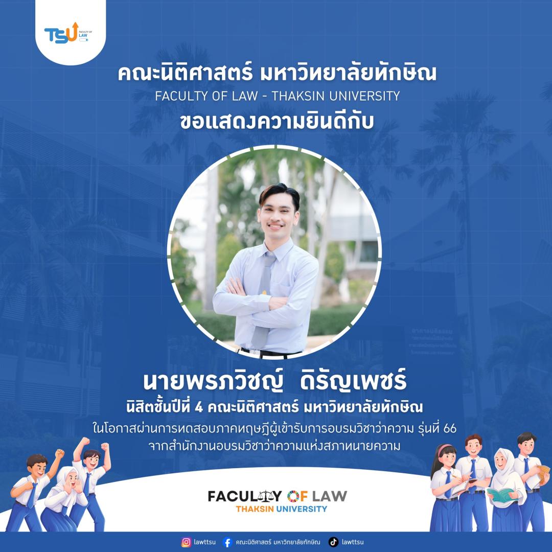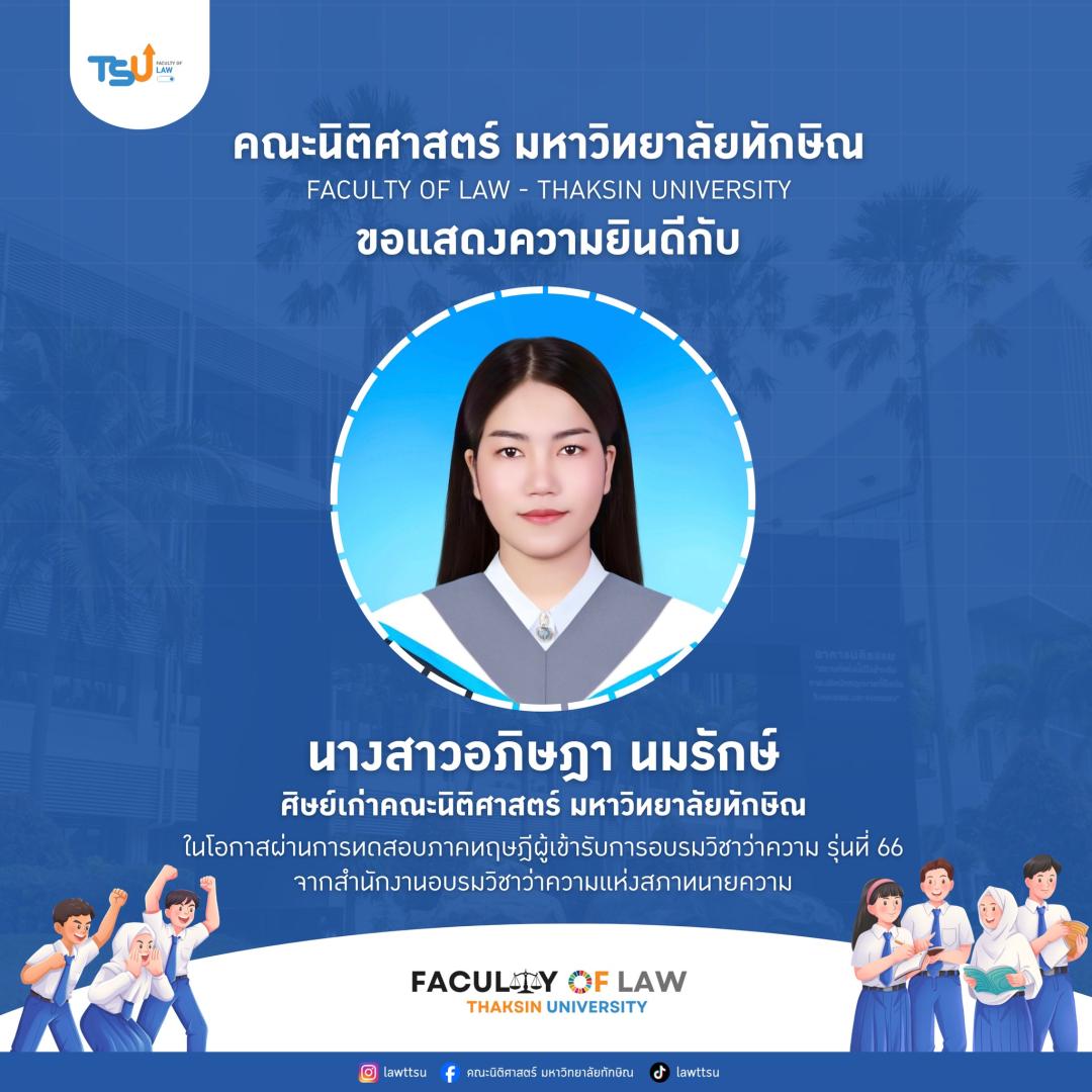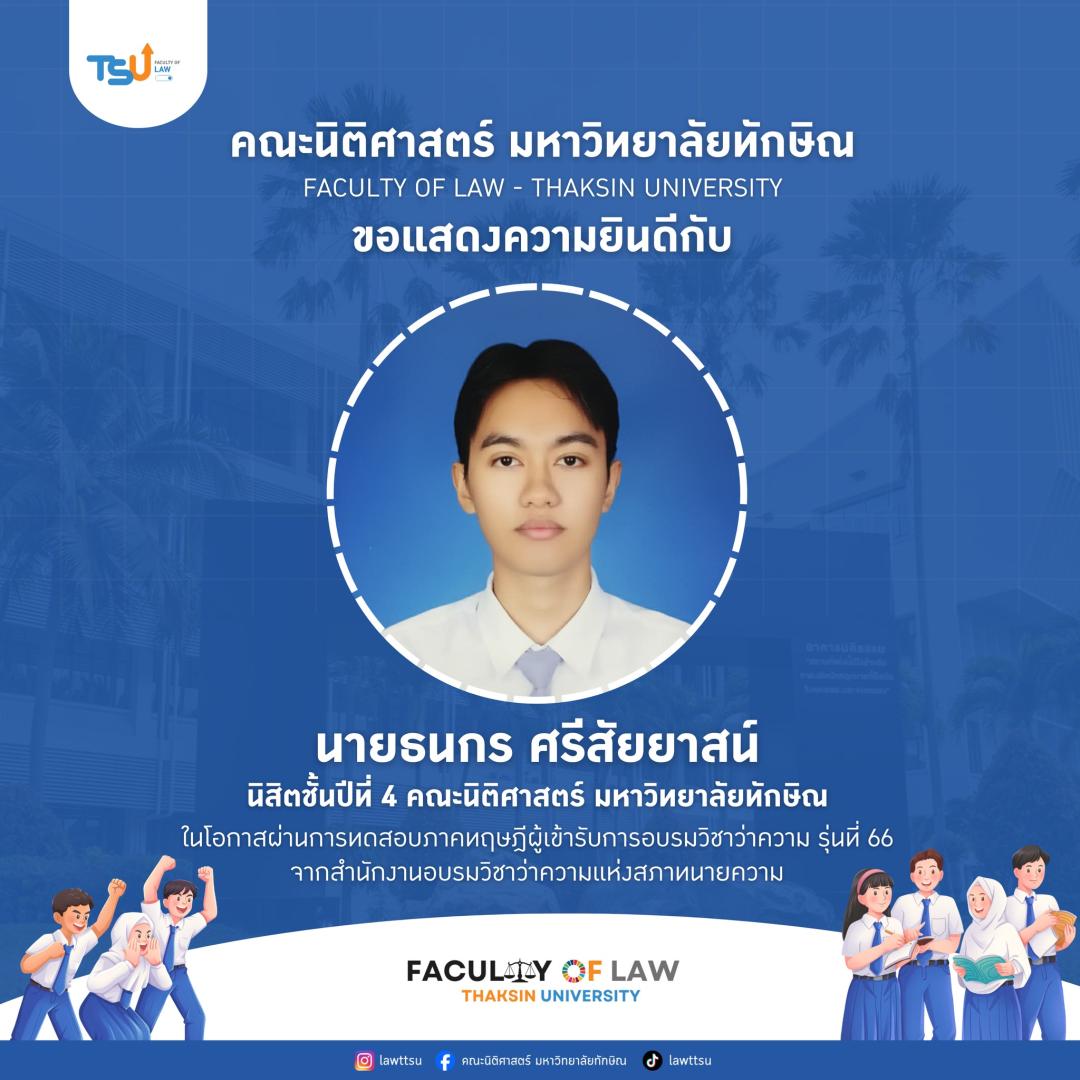 ???? ขอแสดงความยินดีกับความสำเร็จอีกก้าวของนิสิต และศิษย์เก่านิติศาสตร์ มหาวิทยาลัยทักษิณ
