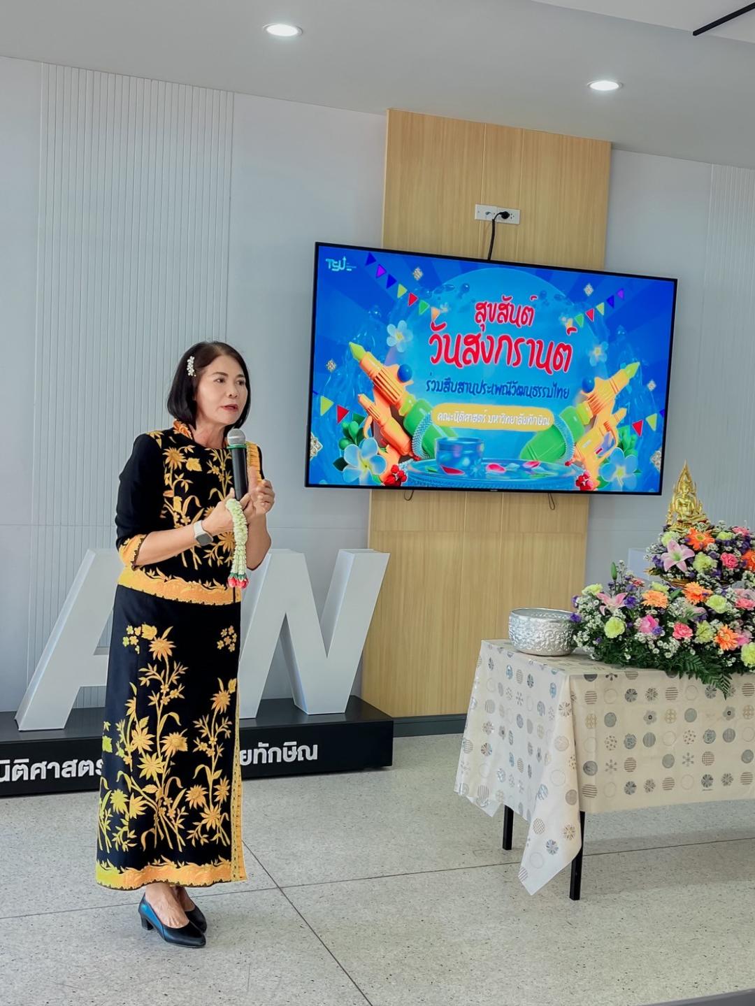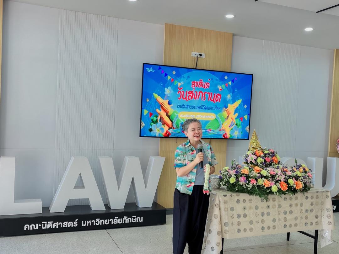 คณะนิติศาสตร์ มหาวิทยาลัยทักษิณ จัดกิจกรรม "นิติศาสตร์ชื่นฉ่ำ สืบสานสงกรานต์ ประจำปี 2569" ณ โถงกลางชั้น 1 อาคารนิติธรรม เพื่อเป็นการร่วมสืบสานวัฒนธรรมอันดีงามของไทยเนื่องในเทศกาลวันสงกรานต์ ภายในงานมีการจัดพิธีสรงน้ำพระพุทธรูปเพื่อความเป็นสิริมงคล โดยมีคณะผู้บริหาร คณาจารย์ และบุคลากรเข้าร่วมกันอย่างอบอุ่น บรรยากาศเต็มไปด้วยรอยยิ้มและความชื่นฉ่ำใจ