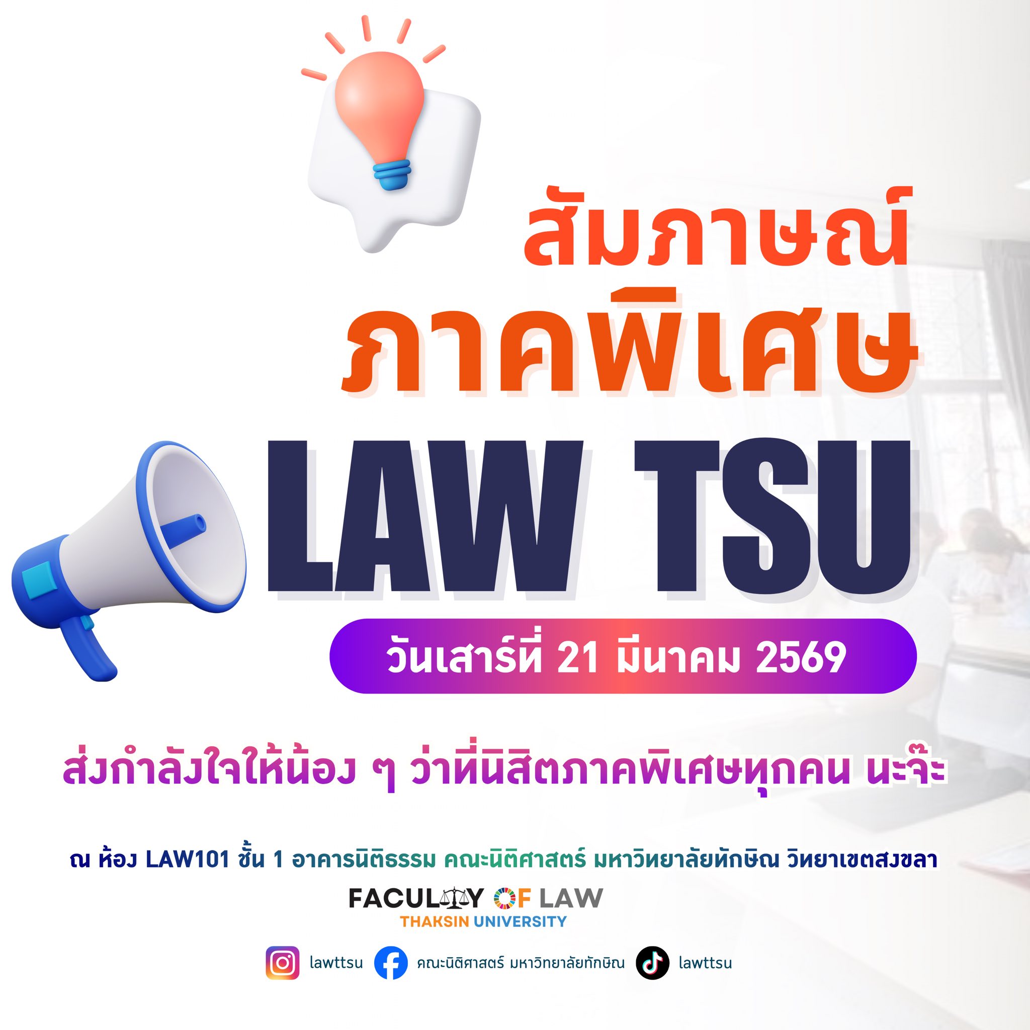 TCAS69 โค้งสุดท้าย! คณะนิติศาสตร์ ม.ทักษิณ (สงขลา) เปิดรับโควตาแล้ววันนี้