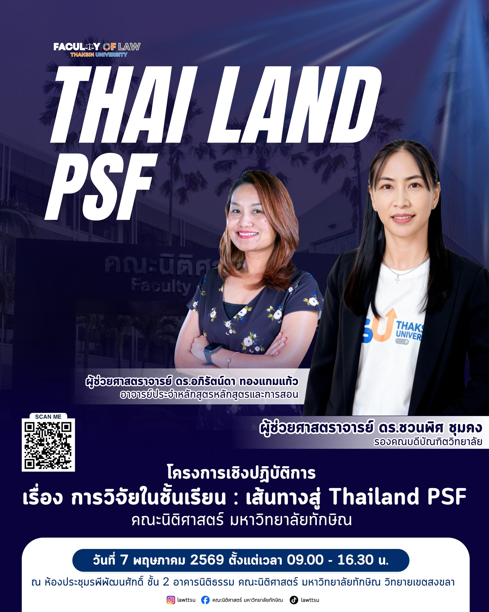 โอกาสสำคัญ ชวนคณาจารย์คณะนิติศาสตร์ อัปสกิลงานวิจัยในชั้นเรียน ปูทางสู่มาตรฐานความเลิศด้านการสอน Thailand PSF