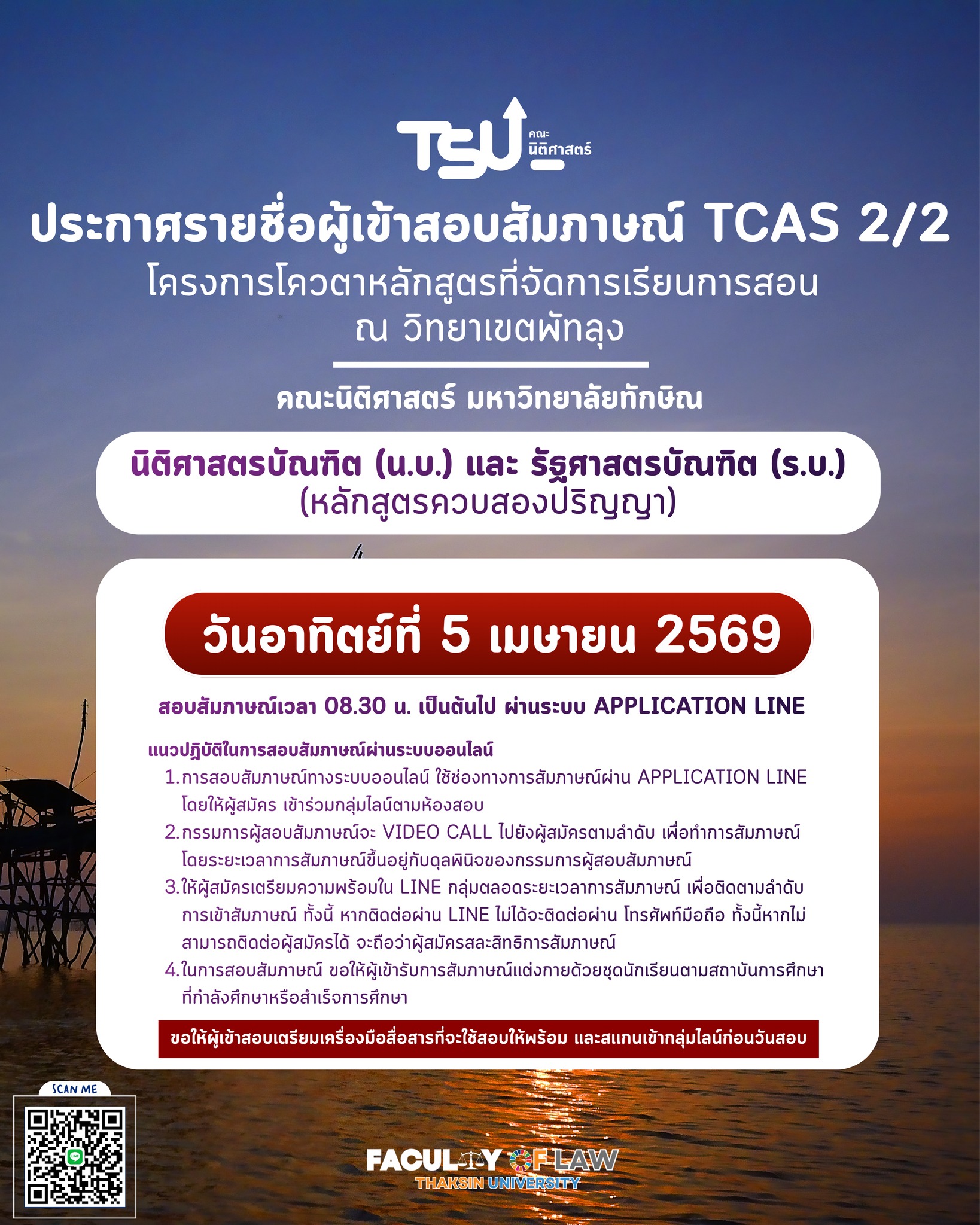 เตรียมตัวให้พร้อม นิติศาสตร์ ม.ทักษิณ นัดสอบสัมภาษณ์ TCAS 2/2 (หลักสูตรควบ 2 ปริญญา) 5 เมษายนนี้